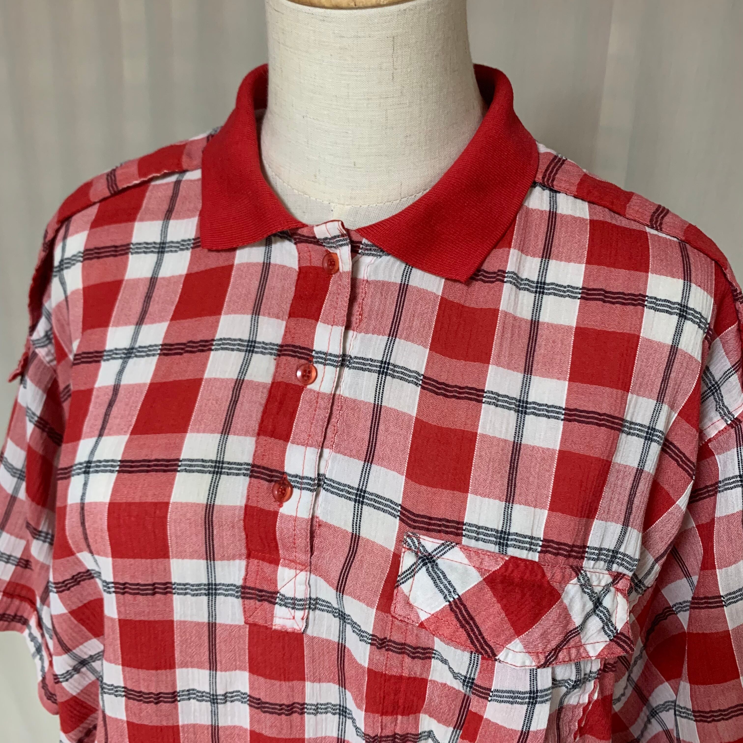 赤 黒 チェック 半袖シャツ 半袖ポロシャツ