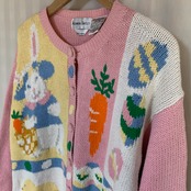 ウサギ、ニンジン、タマゴ、ヒヨコのイースターモチーフのニットです。帽子を被ってニンジン入りのカゴを持った白ウサギが何とも可愛らしいです!
