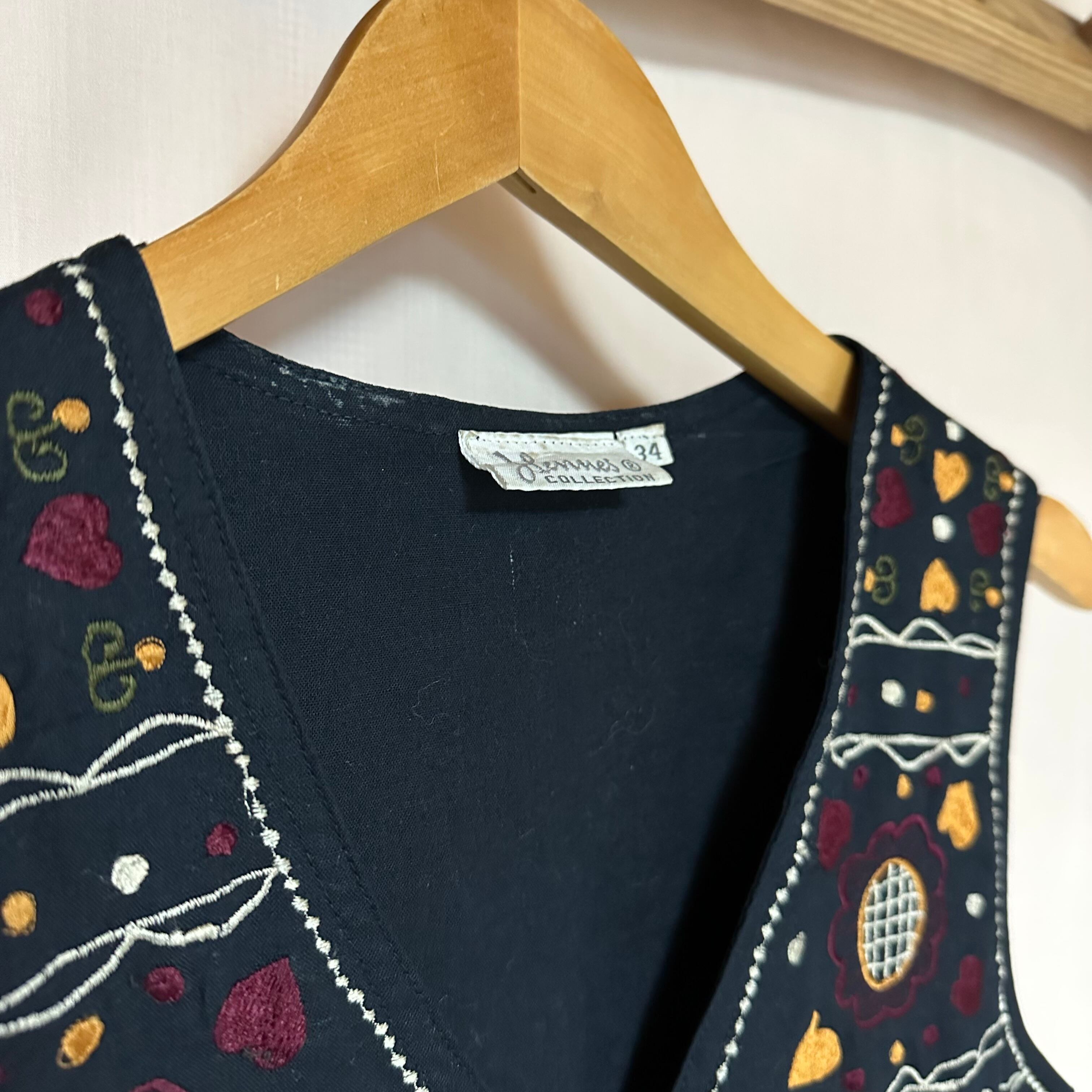◉ヒトメボレのカラフルシシュウベスト◉ 古着 黒 刺繍