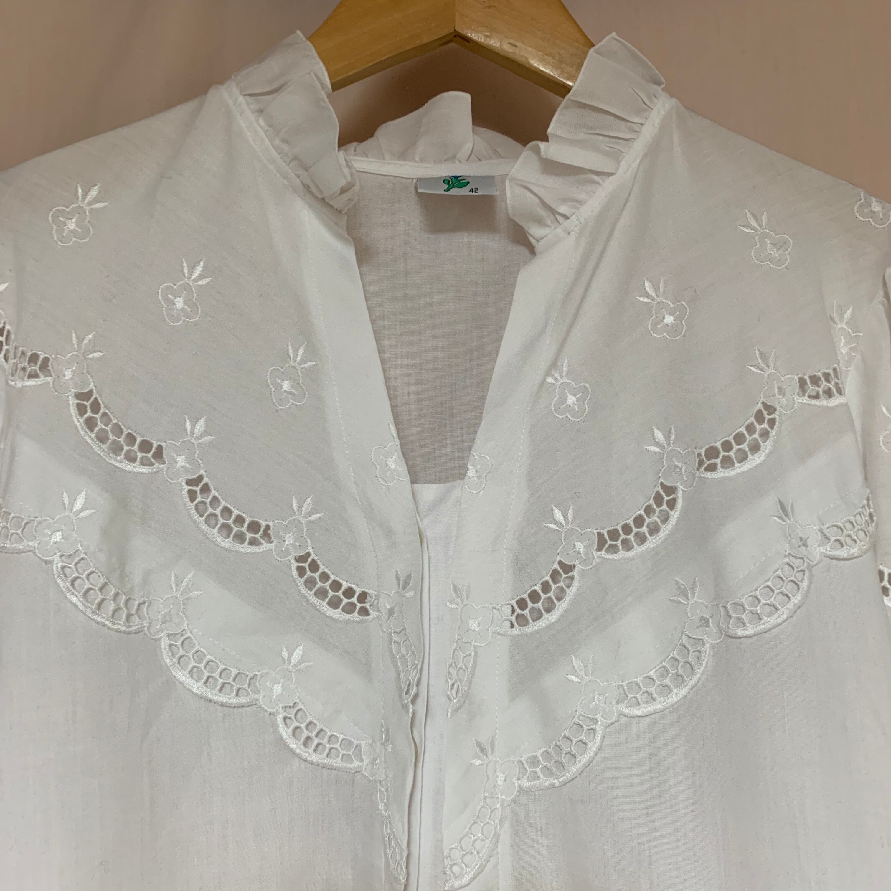 ◉ハヤクオキタアサのレースフラワーブラウス◉ 古着 白