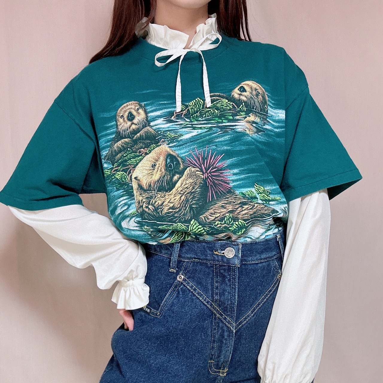 ◉プカプカラッコサンタチのグリーンTシャツ◉