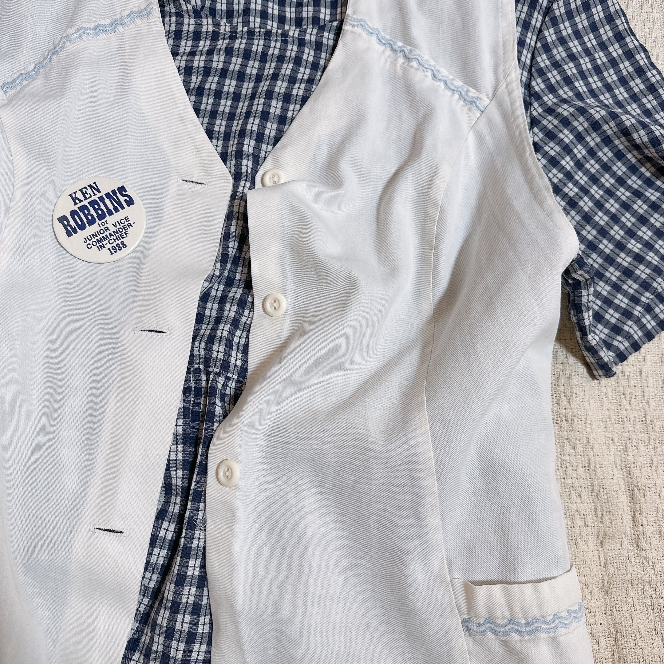 ホワイトカラーに淡い水色の刺繍が可愛いロングベストです。