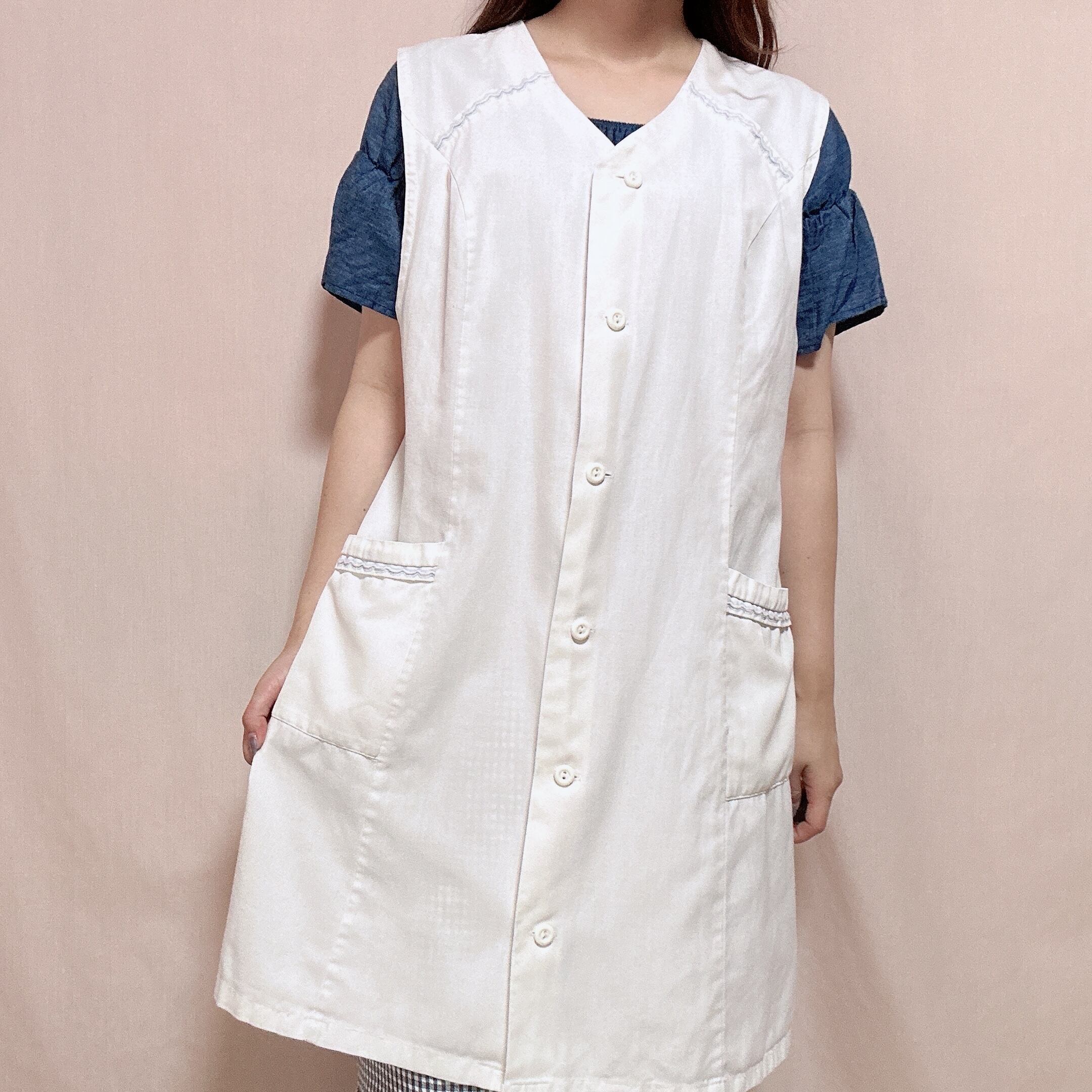 ◉プレーンヨーグルトなロングベスト◉古着 白 ジレ