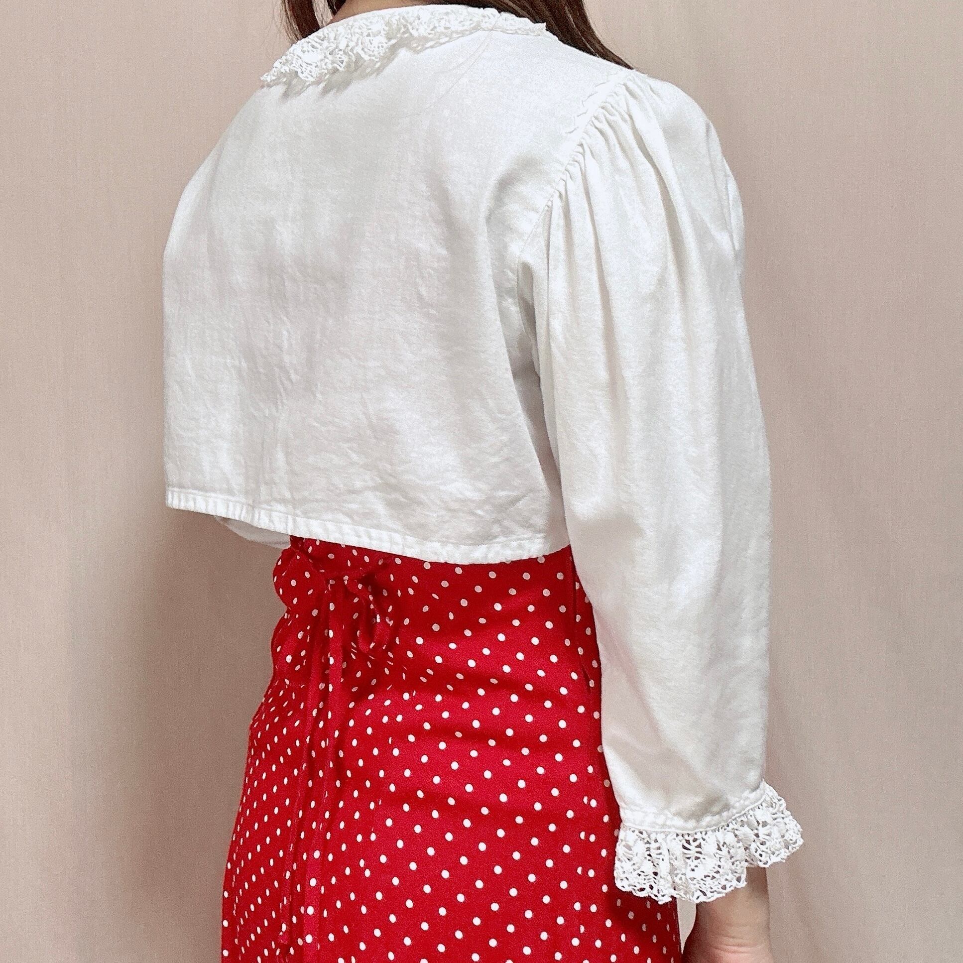 ◉マッサラナキモチのクロップドブラウス◉ 古着 チロル 白